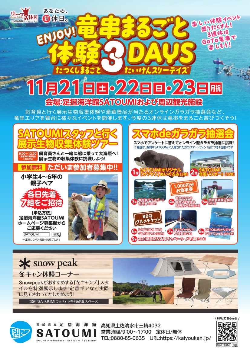 11月の3連休、竜串は楽しい体験イベントが盛りだくさん。