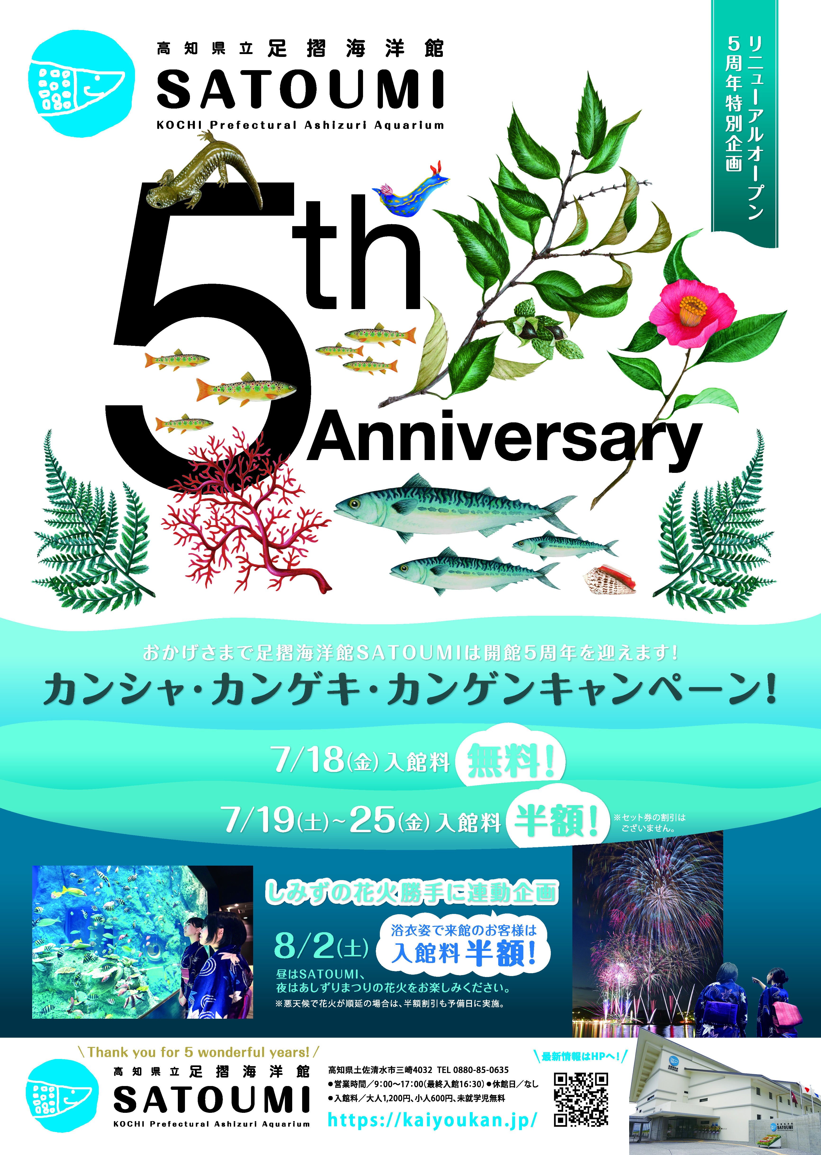 おかげさまで足摺海洋館SATOUMIは、2020年7月18日の開館から今年で5周年を迎えます。