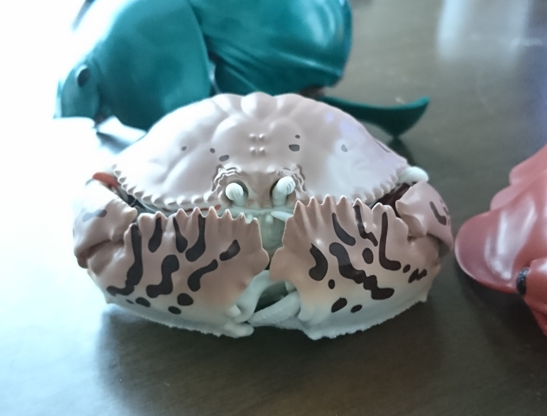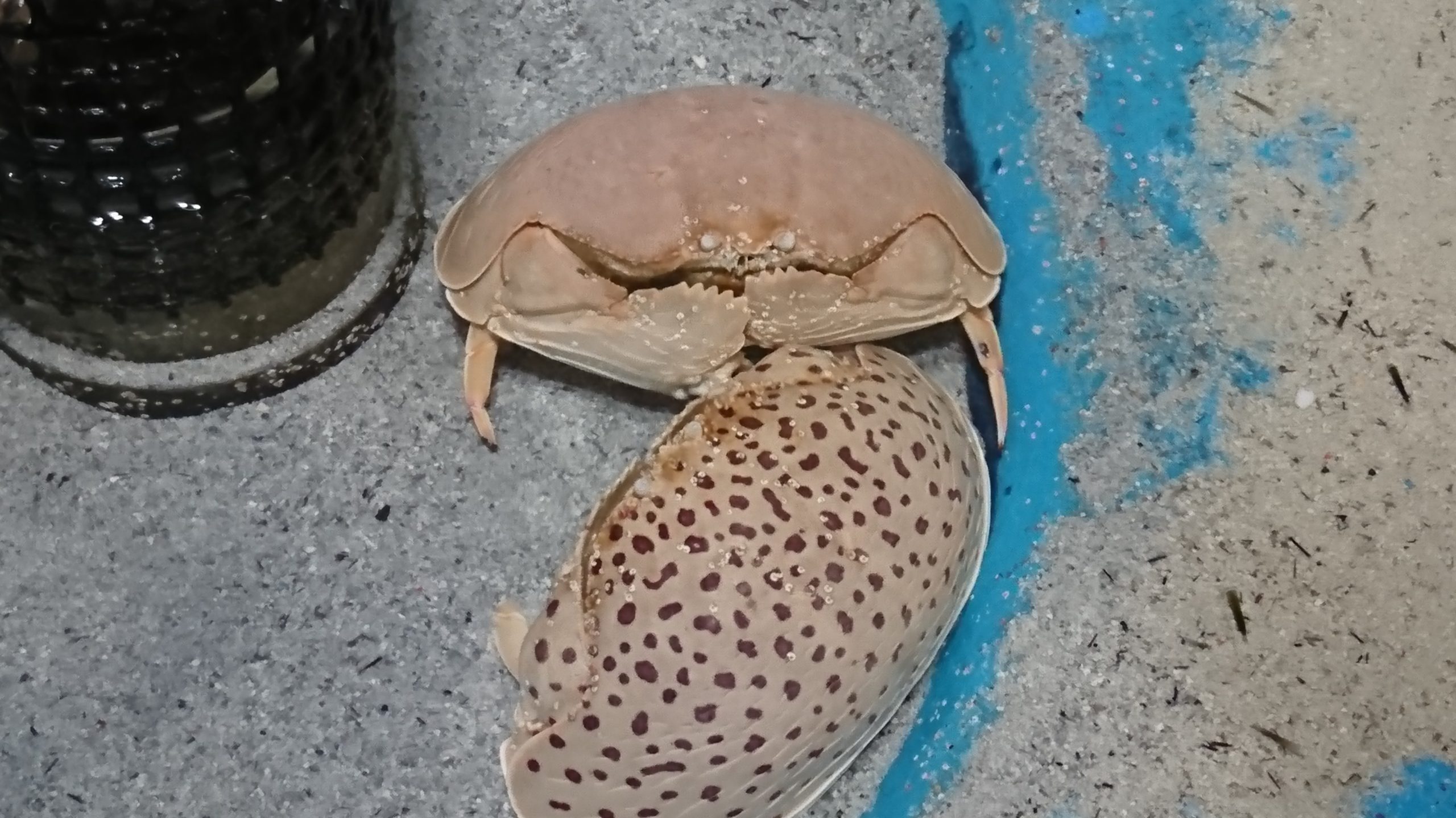 マルソデカラッパで片方は模様違いで、水玉模様になっています。体の形はコロンと丸くて、動きも愛らしく私の好きなカニです。