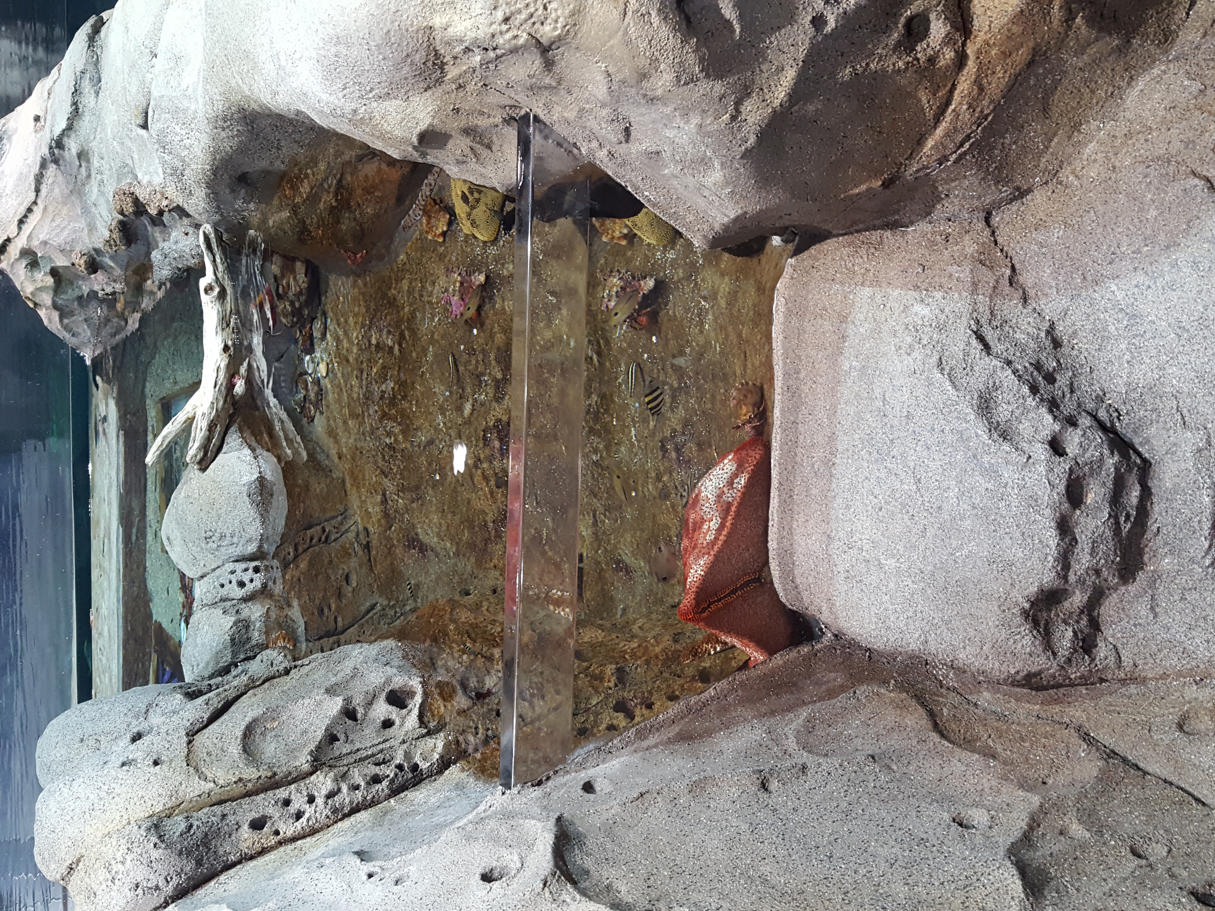 T-中のオススメは目線を低くしてアクリル越しに魚たちを見ることです。魚たちの目線で楽しんで頂けると思います。