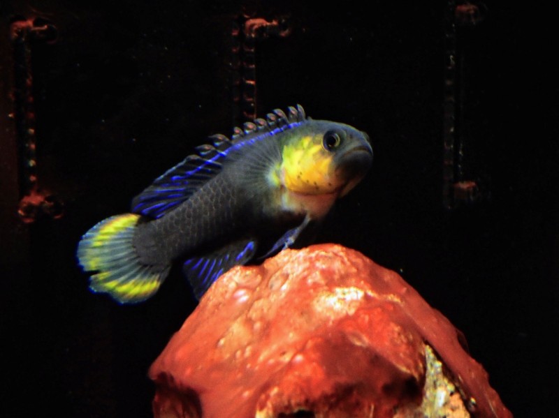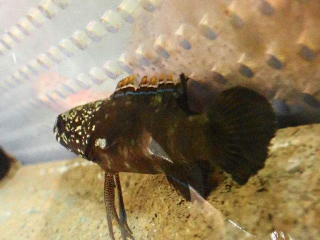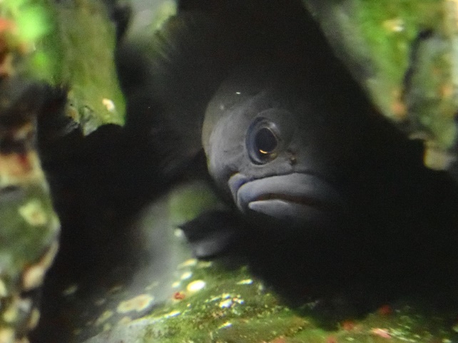 普段は黒色をしていて、石の影に隠れているので目立たない存在ですが(よく見ると背ビレの付け根に鮮やかな青い縦線が入っていて綺麗です。✨)