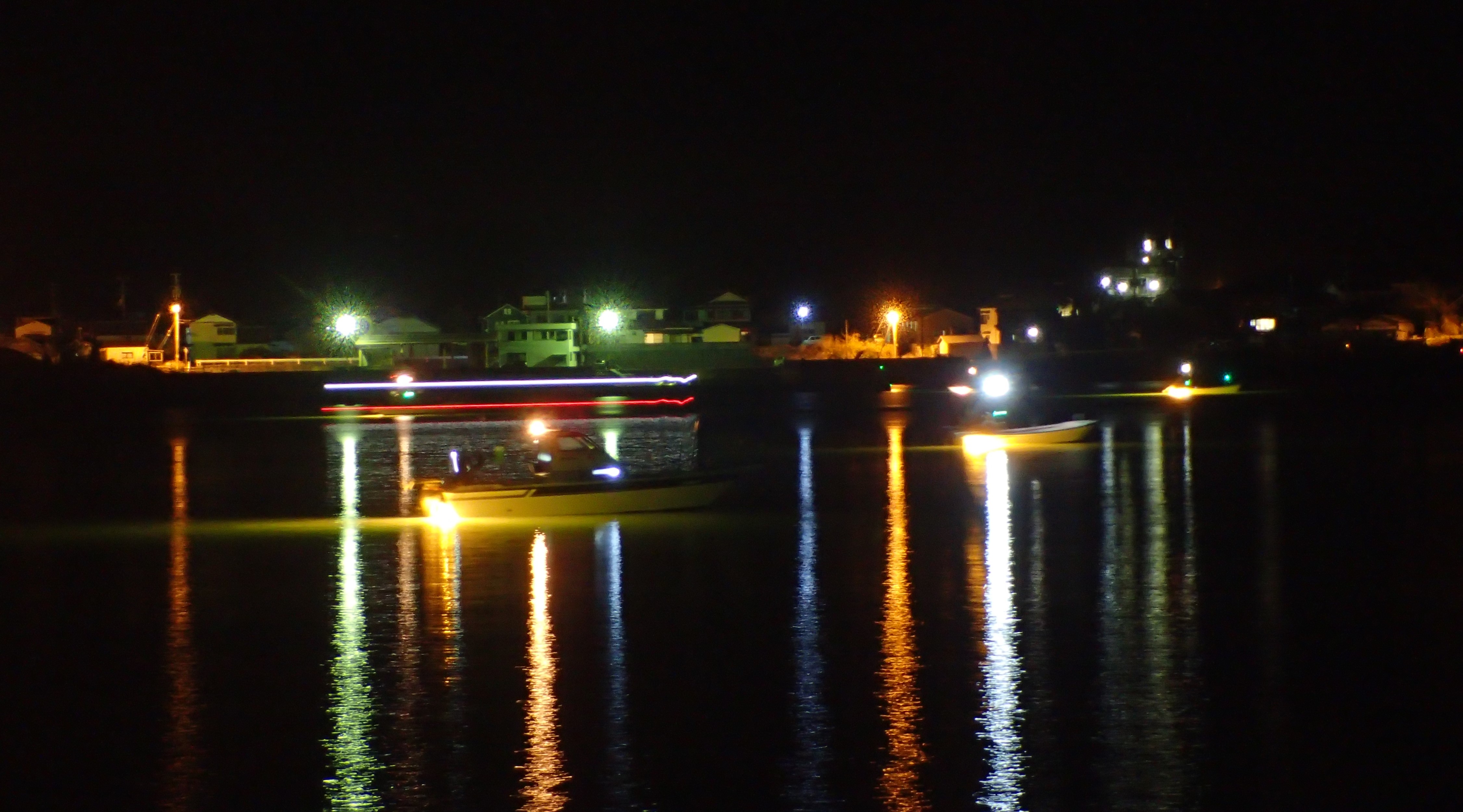 シラスウナギを光でおびき寄せてすくいとる「シラスウナギ漁」の様子です。