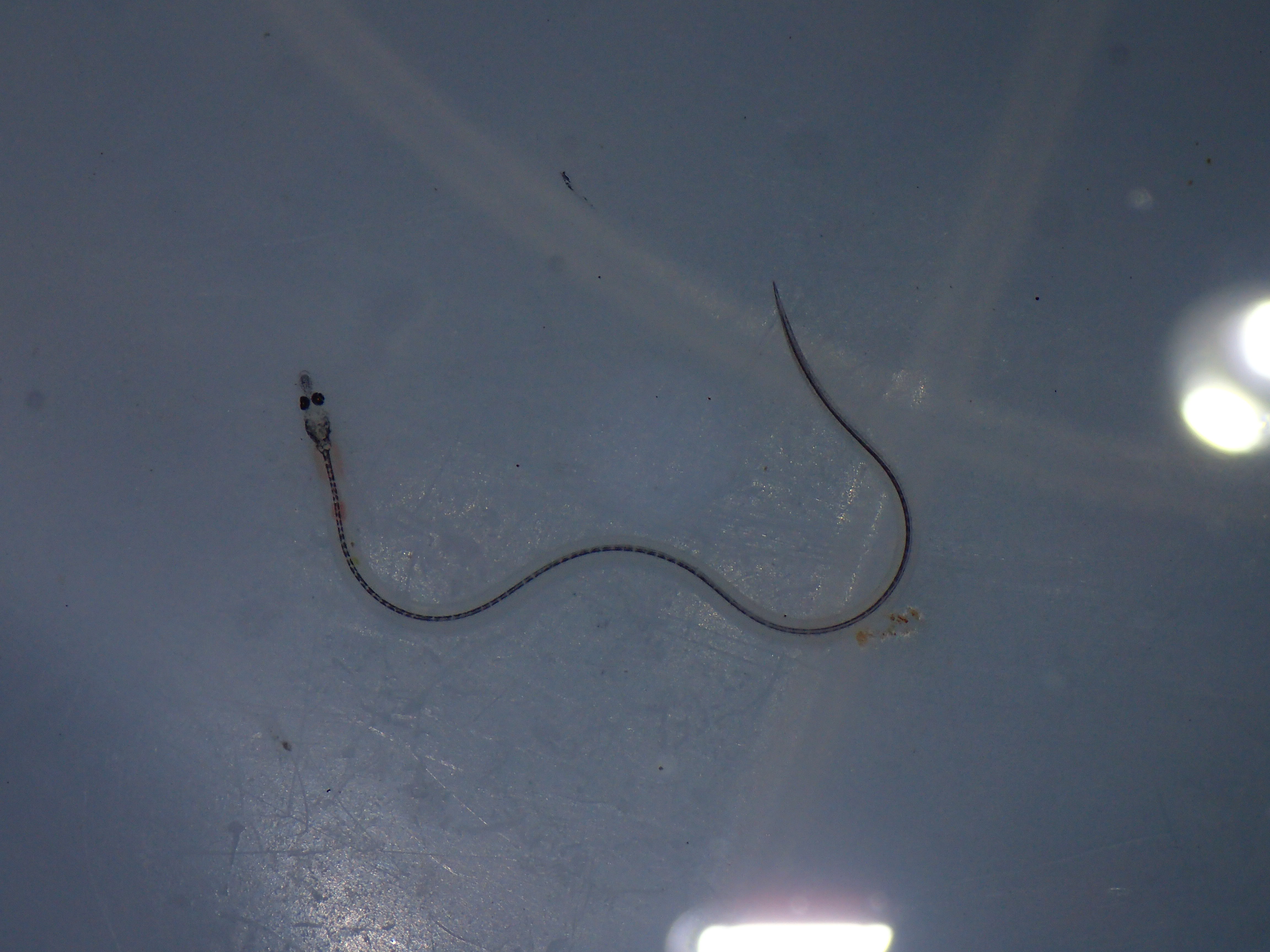 ↑シラスウナギをおびき寄せる集魚灯 ↑四万十川河口でとれたシラスウナギ