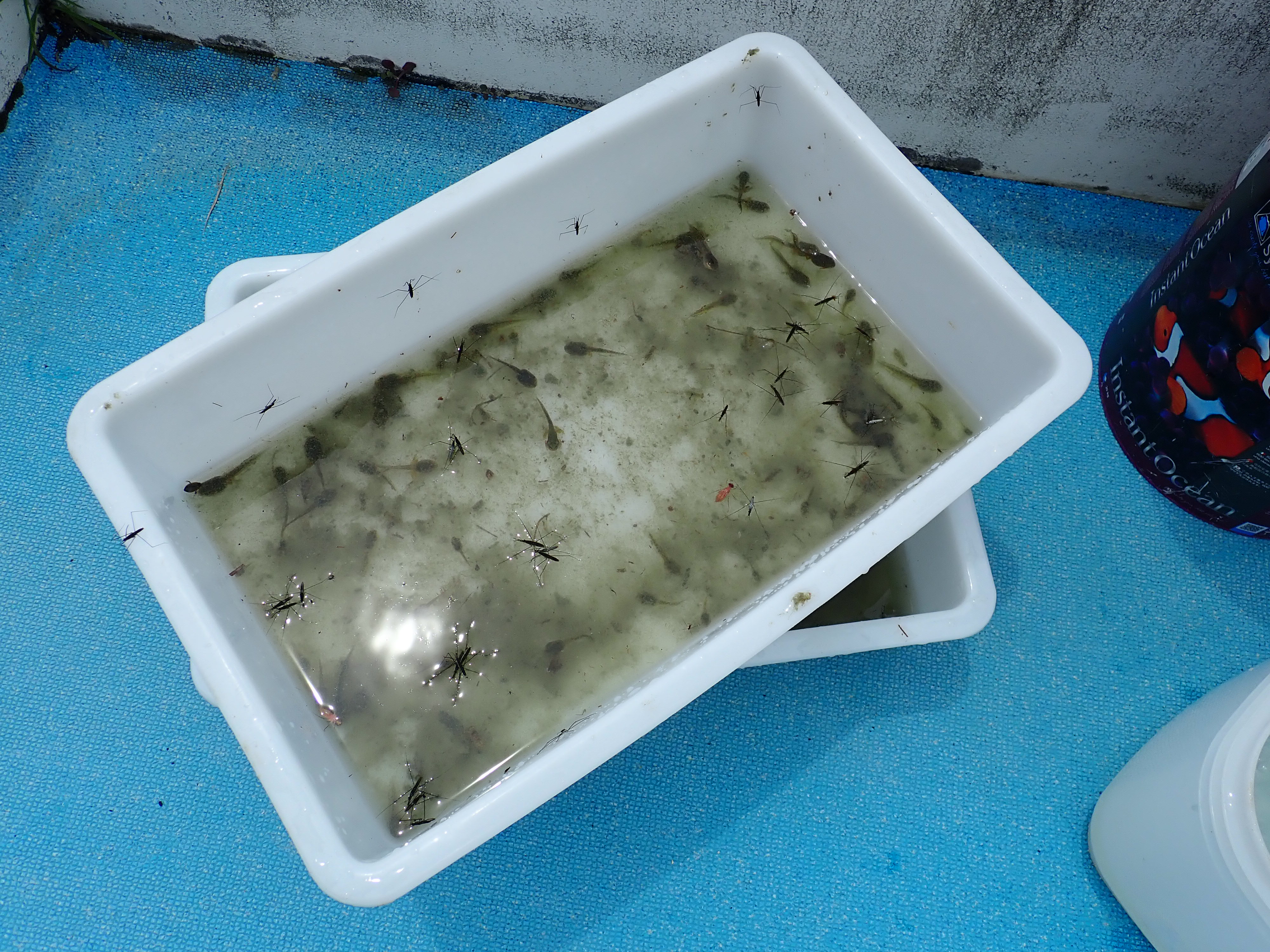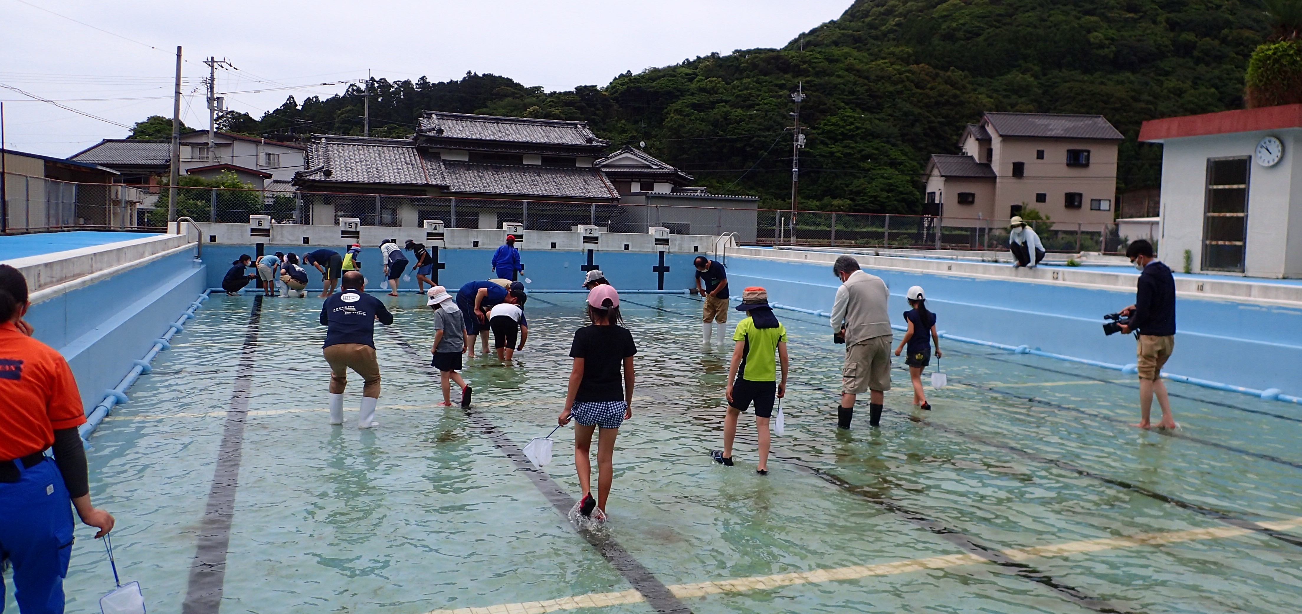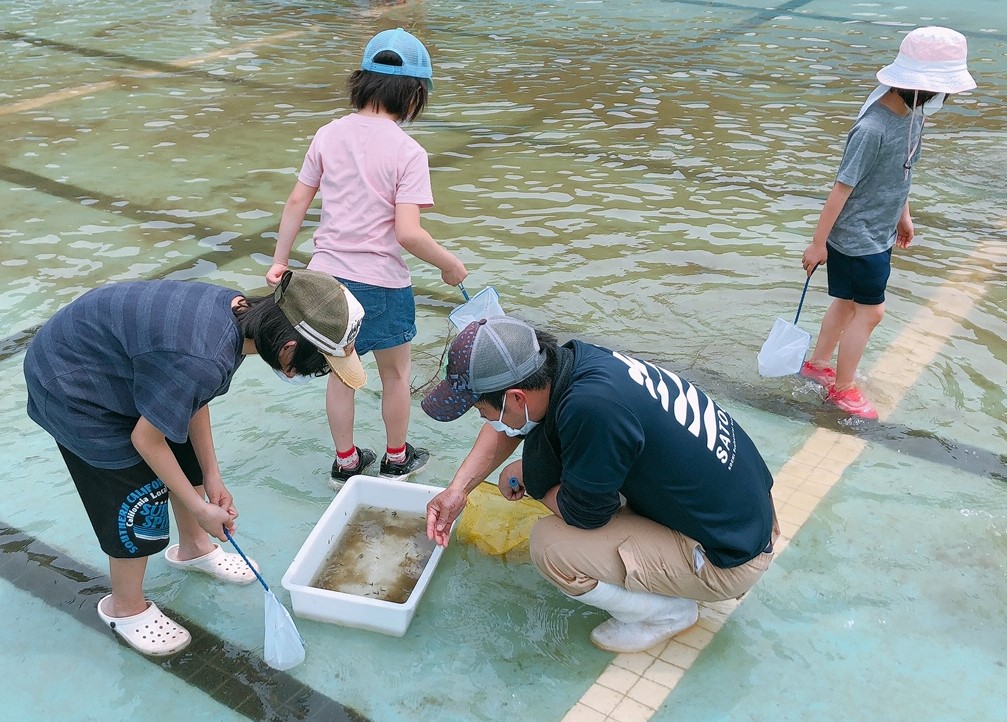 プールの授業が始まる頃には、生まれたヤゴやオタマジャクシが大人になり始めるのですが、プール掃除の際に排水と一緒に流されてしまいます。そんな生き物たちを助けよう!といった試みが今回行った特別授業「生き物救出作戦」です。