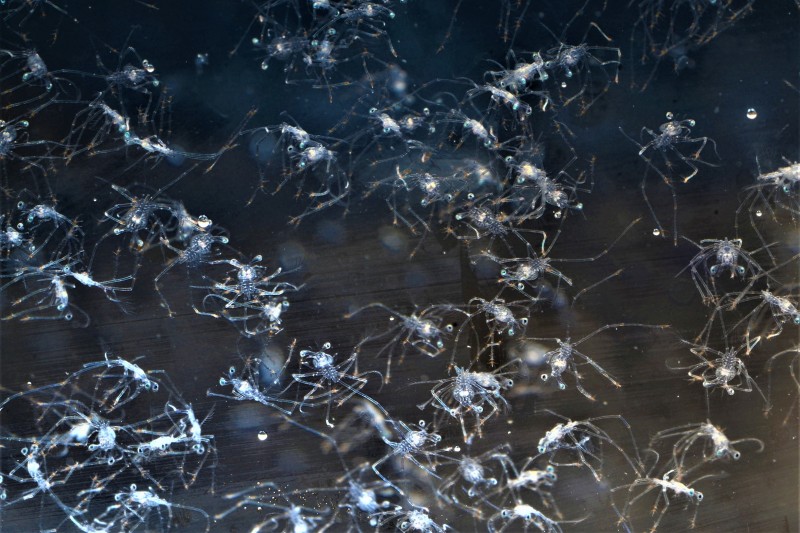 この母コブセミエビは1か月程前からお腹に卵を付けており、2日間かけて孵化しました。