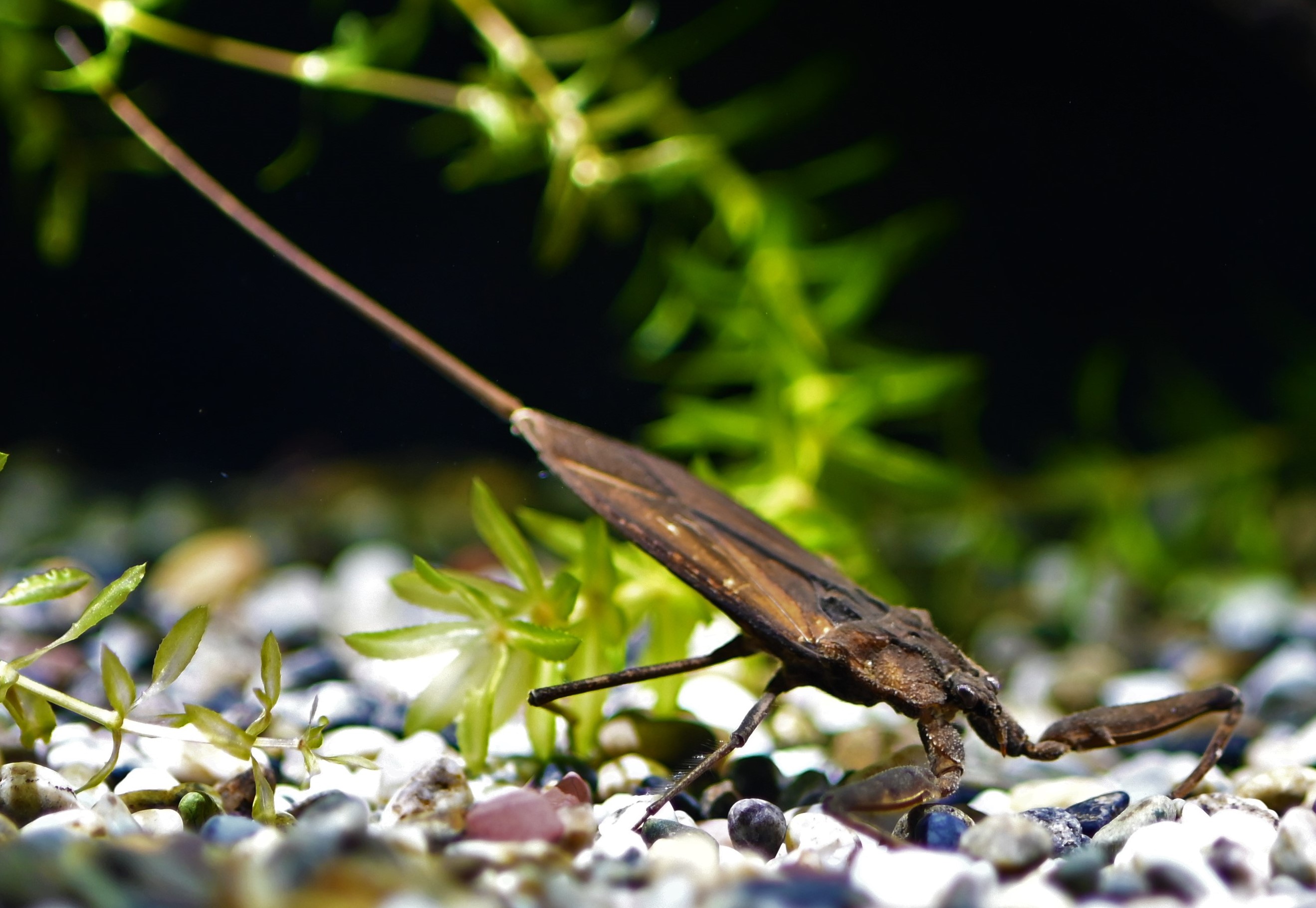 呼吸をするための長い管をもち、先端を水面に出すことで、水中に潜ったまま呼吸ができます。