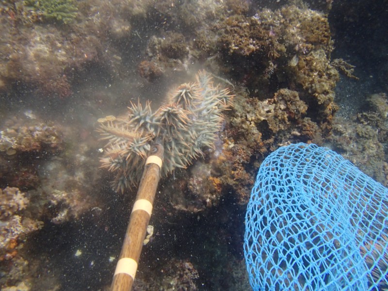 駆除を行ったオニヒトデですが、非常に強い毒を持っております。海辺等で見かけても触らないようにして下さい。