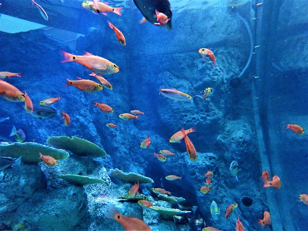 まずはこちら、黒潮の恵み水槽の向かいにある大水槽丸窓です。