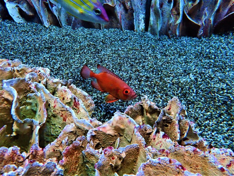 くりくりお目目が可愛い、真っ赤な魚です。大水槽には現在4個体泳いでいます、水槽の下のほうを探してみてくださいね。