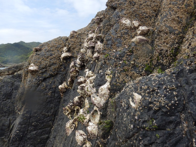 水中だけでなく、干上がった岩場にも貝類やフジツボの仲間などを観察することができます。