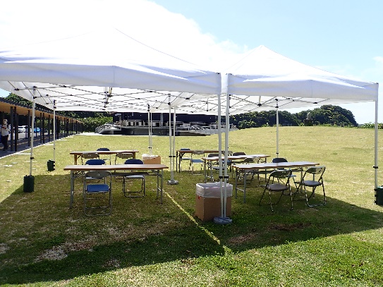 また、屋外では屋台や、土佐清水ならではの魚飯(いおめし)などちょっとしたご飯類(数に限りアリ、売り切れごめん!)もあり、芝生に設置した休憩所でのんびり味わっていただけます。