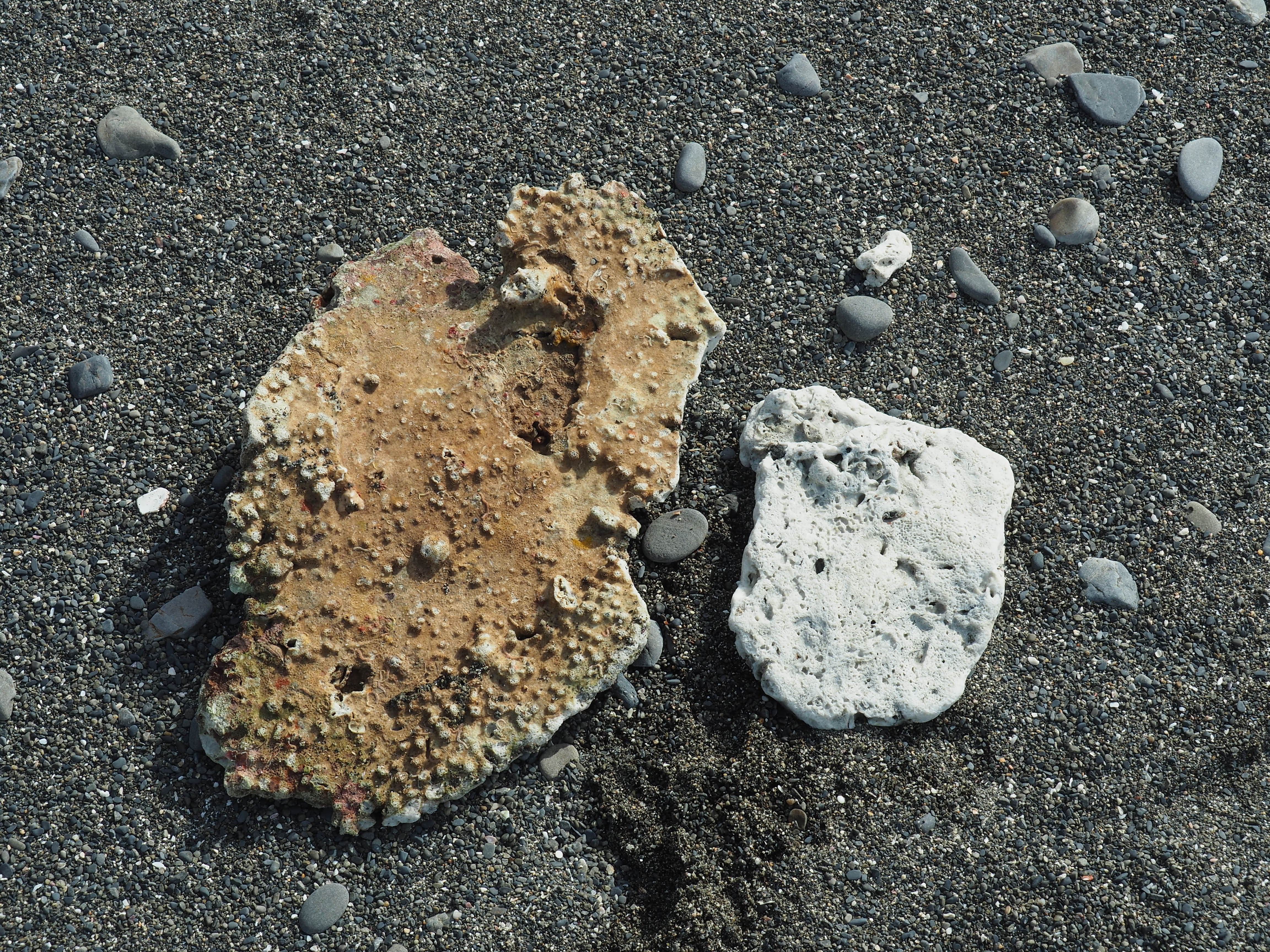 波にもまれて、ほとんど骨格だけになっていますが、生臭いにおいがするので生きていた状態のサンゴが打ちあがったものであることがわかります。
