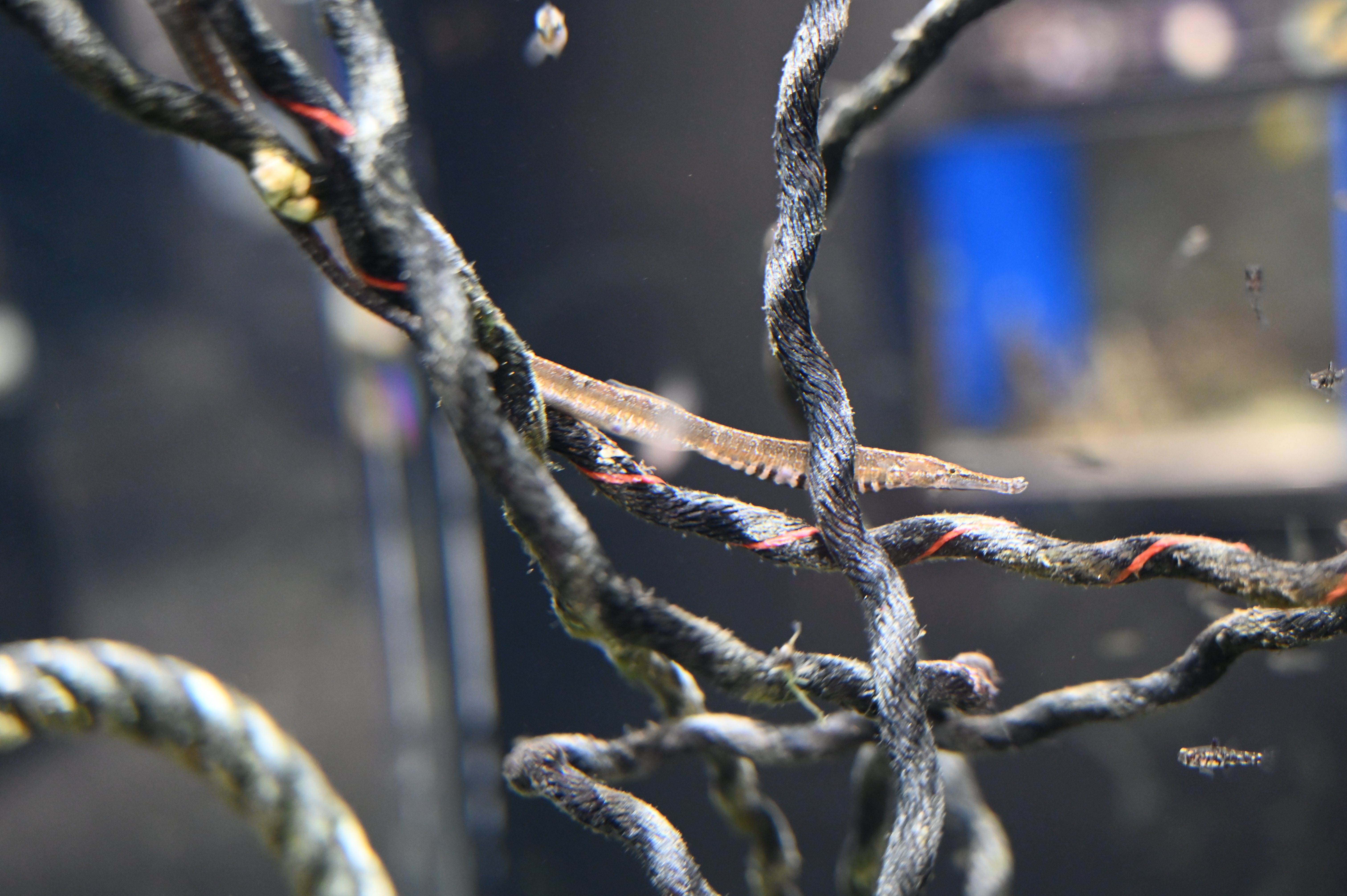よく見られるのは、ナンヨウツバメウオの幼魚やニジギンポ、ヨウジウオの仲間などがロープに寄り添って生活しています。