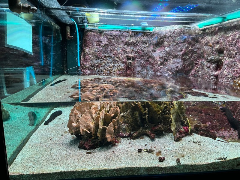 この水槽ではシコロサンゴを展示していました。より竜串周辺の環境を再現するためサンゴの種類を増やし、海の中を切り取ったかのような水槽を目指します。