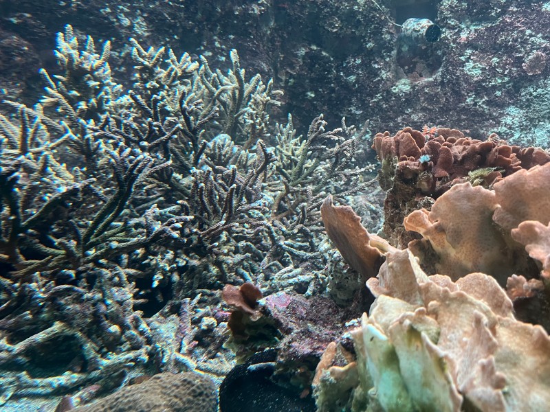 今回、新たにスギノキミドリイシが仲間入りしました。枝状に広がるサンゴで、自然界に自生しているミドリイシの隙間は魚の住処としても利用され、様々な魚種が生活しています。