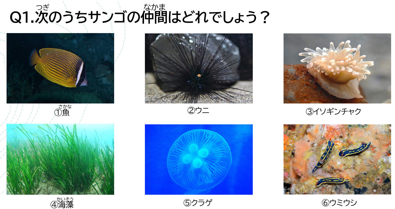 「次のうちサンゴの仲間はどれでしょう?」(ヒント:正解は1つじゃないよ)