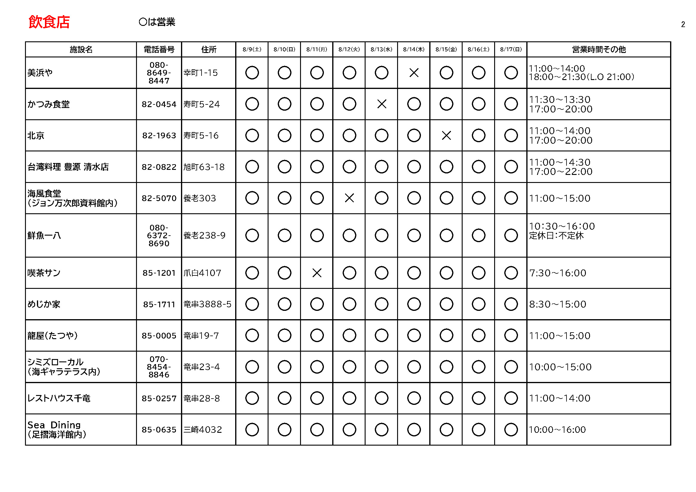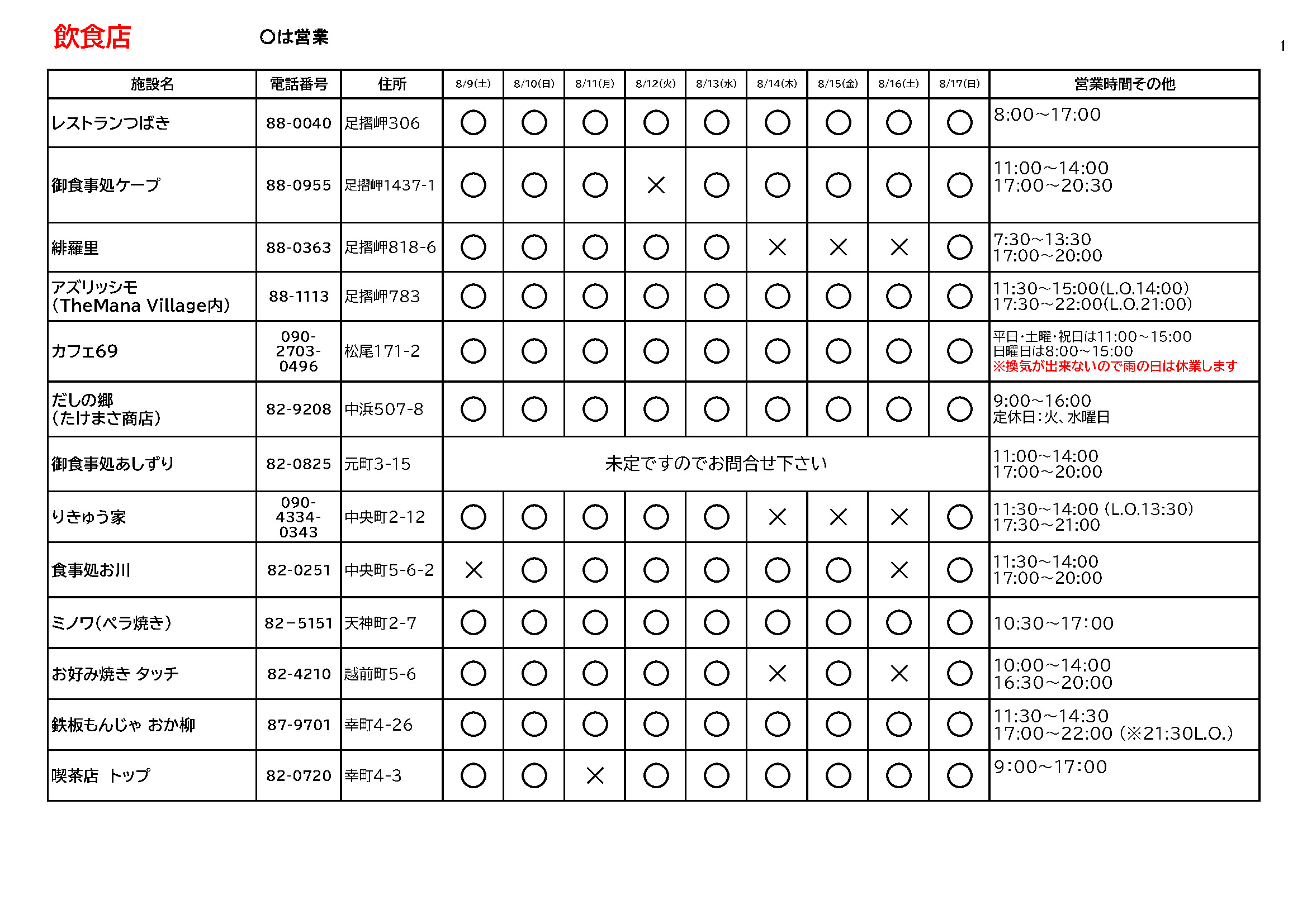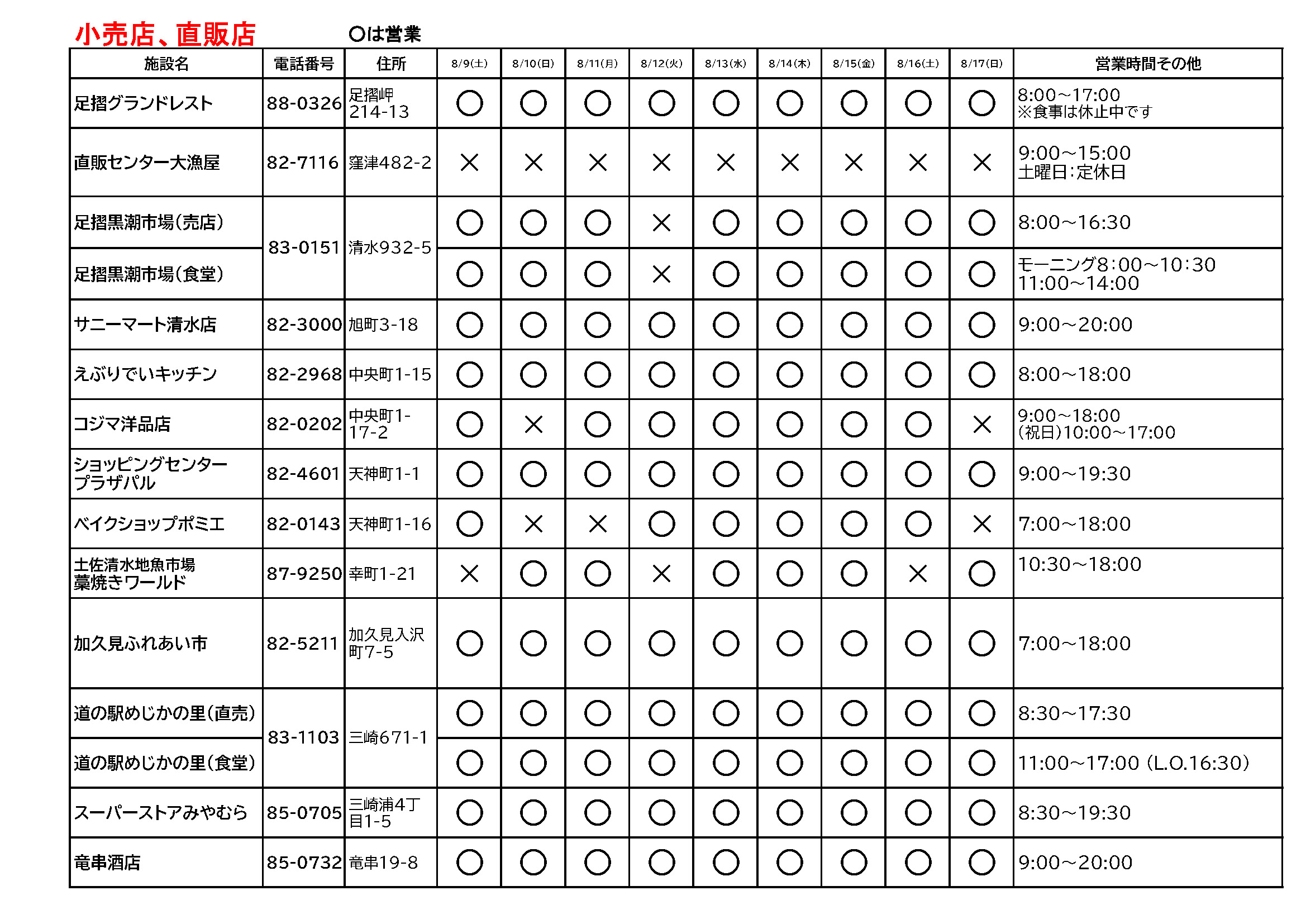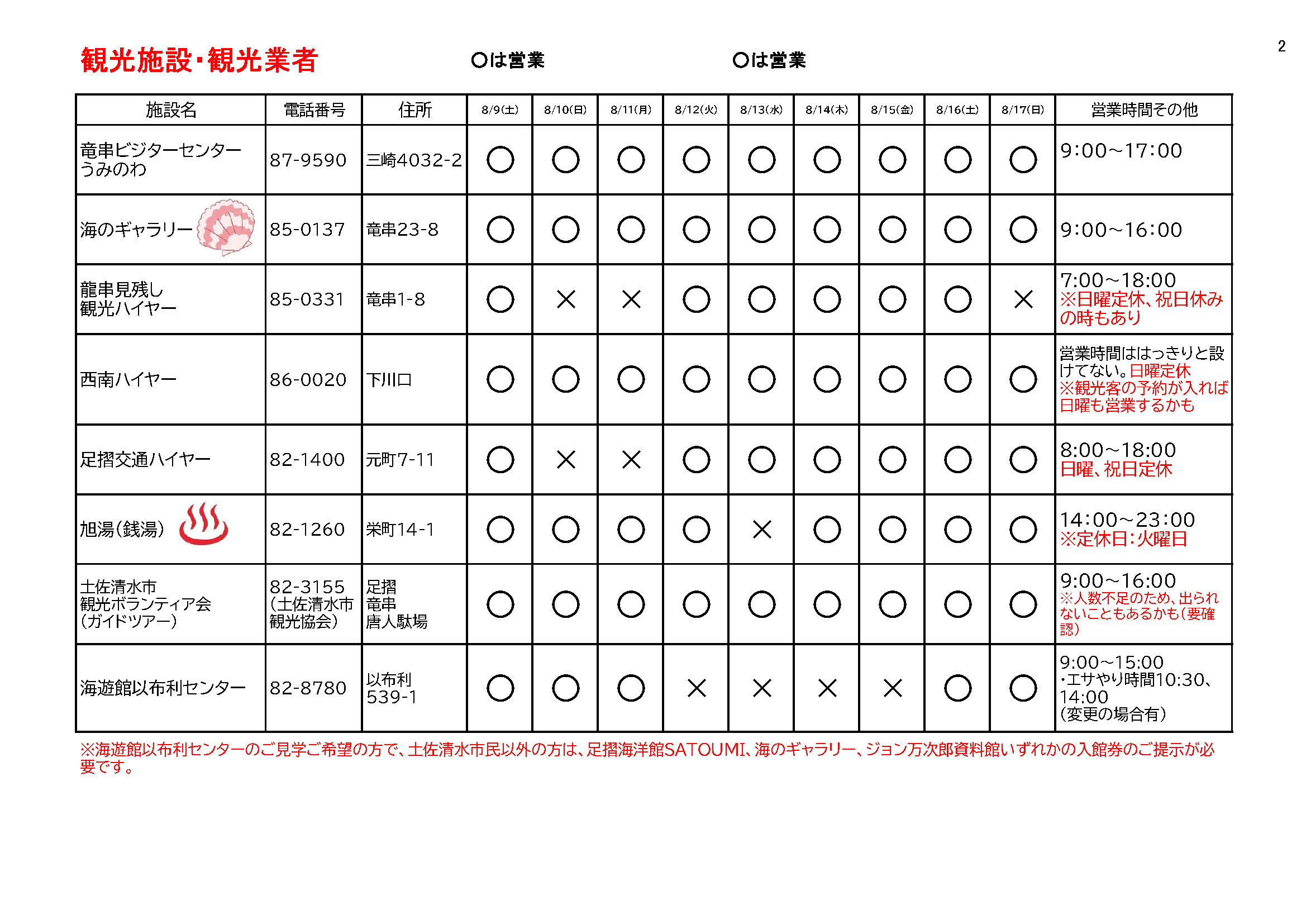 土佐清水市 観光協会より、お盆期間(2025年8月9日(土)~8月17日(日))までの土佐清水市内の観光施設、飲食店等の営業予定についてお知らせ致します。
