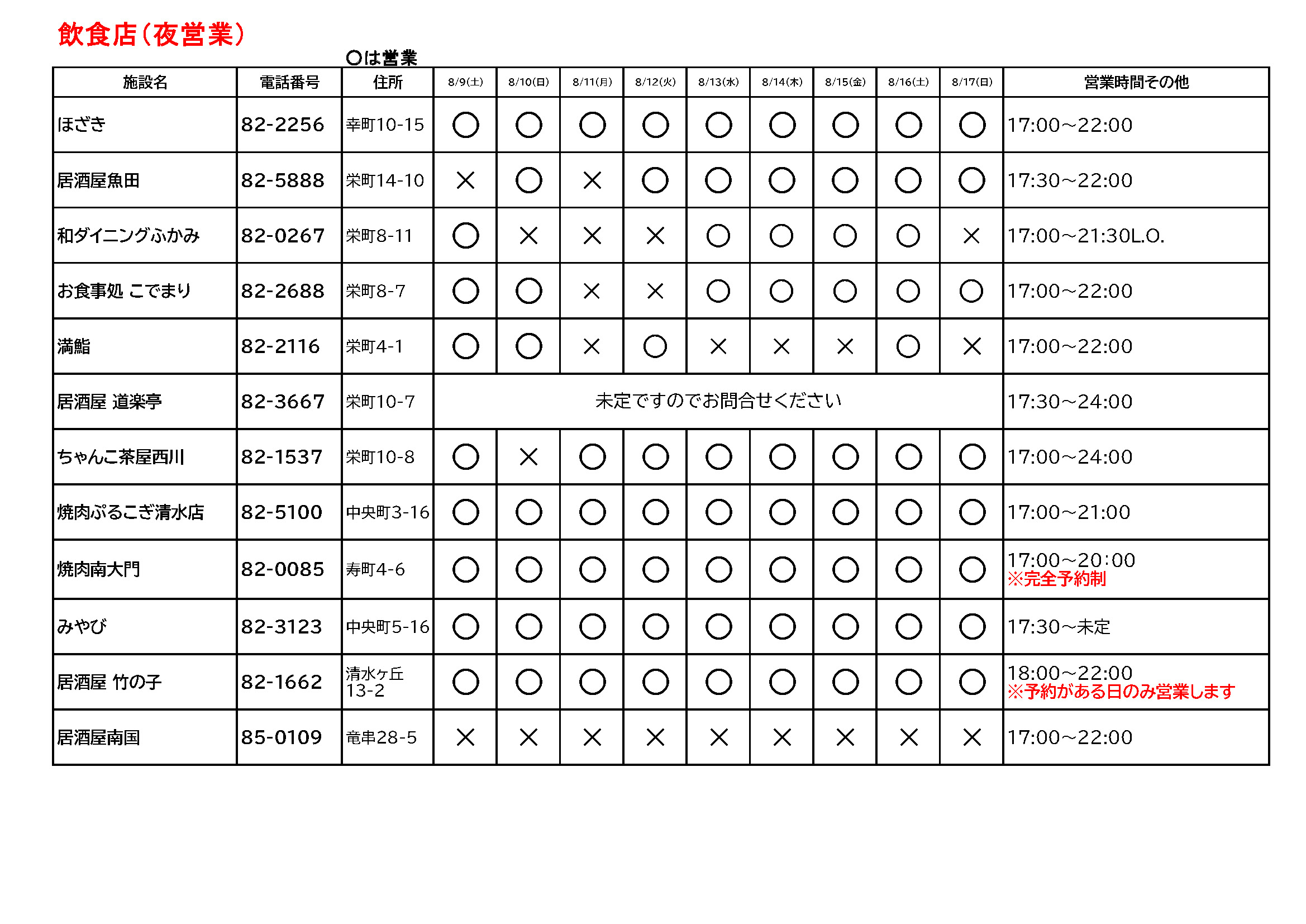 R7年度お盆飲食店営業調査・観光施設① R7年度お盆飲食店営業調査・観光施設②