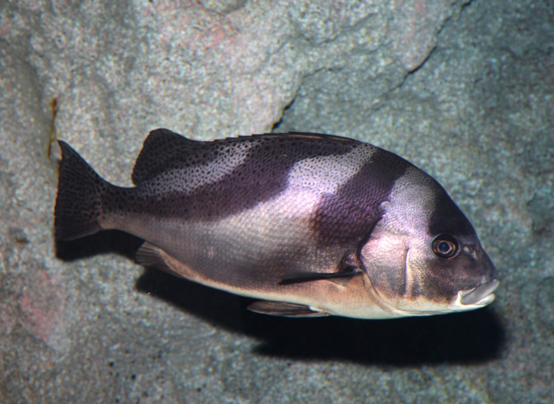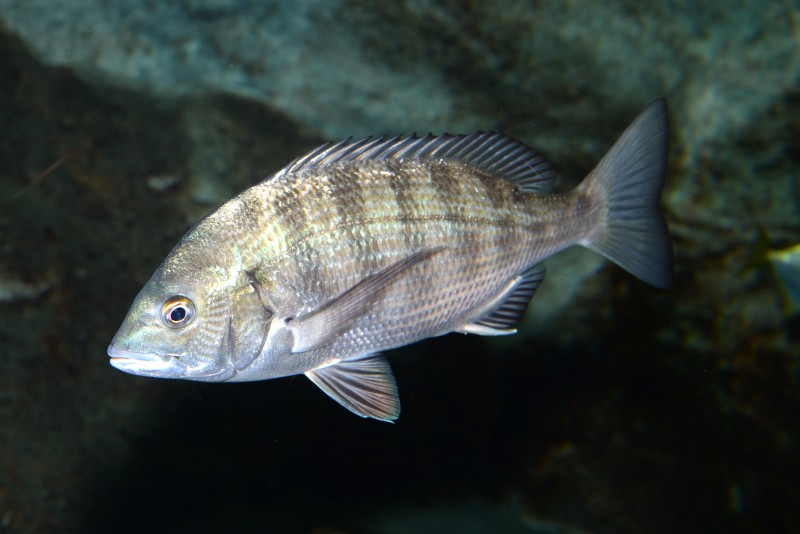 河口水槽のクロダイの綺麗な写真が撮れました。水族館では普通に見られる魚ですが、なかなか綺麗なポーズと体を撮った写真が少ない魚です。クロダイは雌雄同体で成長により性は変わり、小さな時には皆がオスですが、3歳になるとメスの機能を持ちはじめ4歳以上になると多くの個体がメスになり卵を産むようになります。数年という短いスパンの中で、オスになったりメスになったりと大変そうですね。
