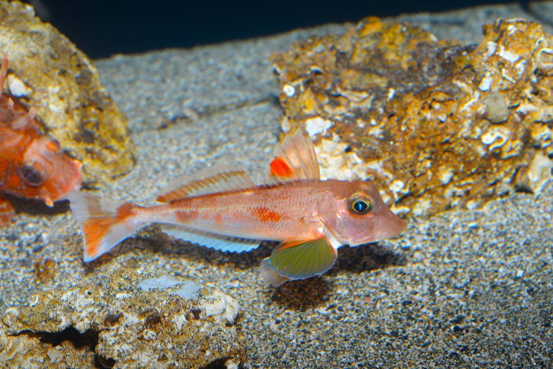 3月5日に紹介した深海コーナーのネズミギス。その時には砂の上に鎮座した写真でしたが、今朝は遊泳中の写真が綺麗に撮れましたよ。大きな胸鰭を大きく広げてカッコいいですね!ちょっと固そうな皮膚感も良く出ていると思います。